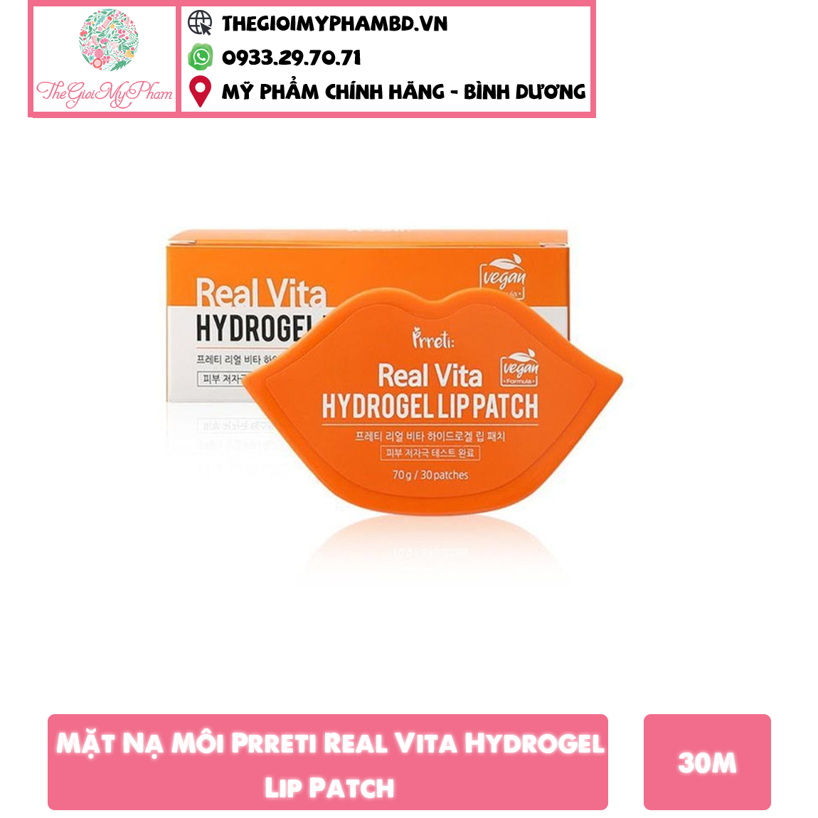 Mặt nạ môi Prreti Real Vita Hydrogel Lip Patch chăm sóc 4 in 1: Cung cấp dưỡng chất, dưỡng ẩm chuyên sâu, mờ nếp nhăn và tảy da chết môi cùng một lúc.