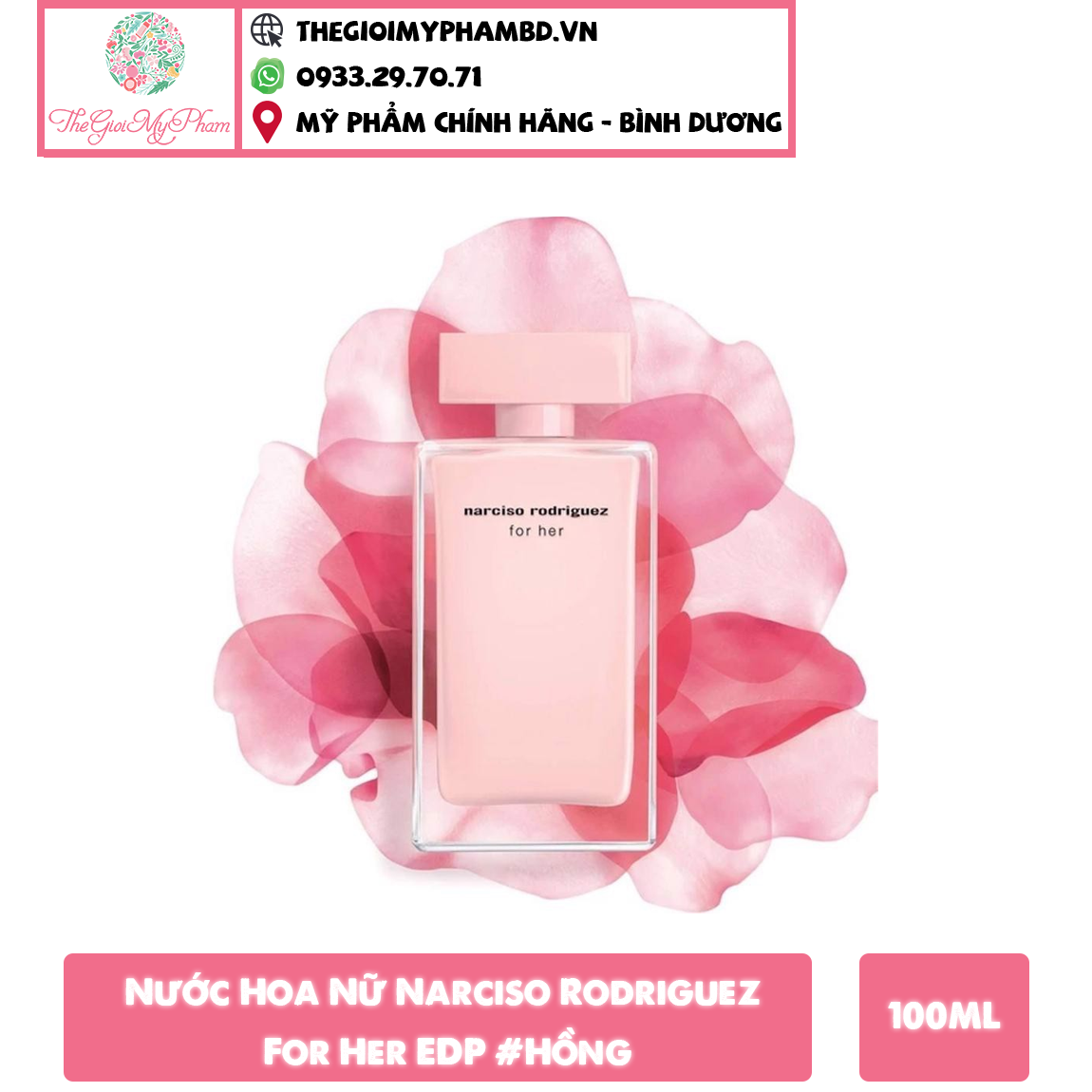 Narciso for Her EDP hồng mang đến một cảm giác nữ tính, quyến rũ, tinh tế và thanh lịch đến khó tả. Mùi hương thanh lịch và quyến rũ theo kiểu sang trọng chứ không phải kiểu diêm dúa cầu kỳ đâu. Mùi hương không ngọt với thành phần chính là xạ hương mang đến cảm giác trầm ấm, hoà quyện với hương hoa hồng và hoa đào và một số nguyên liệu khác tạo nên một mùi hương thơm đặc trưng không lẫn lộn.