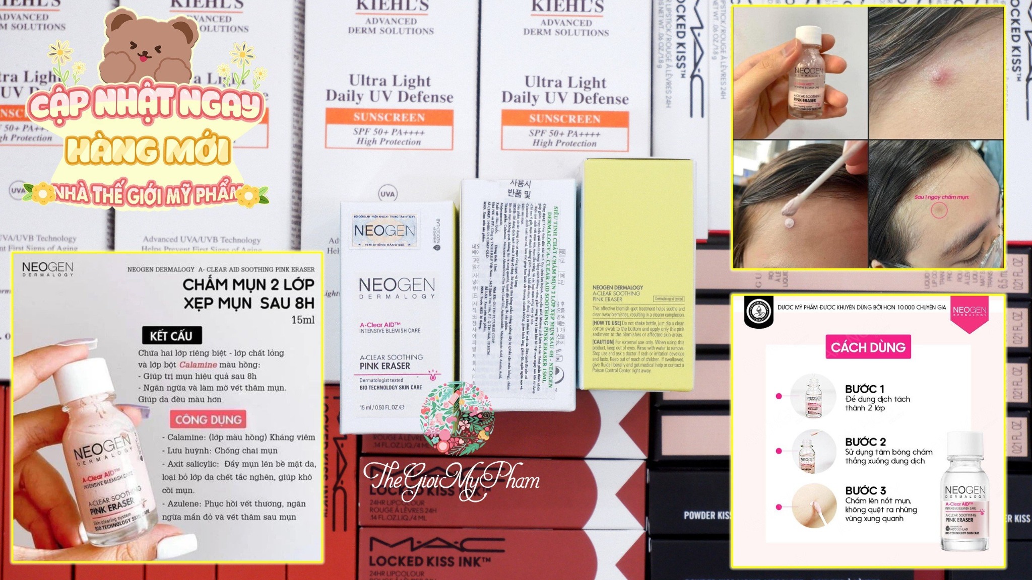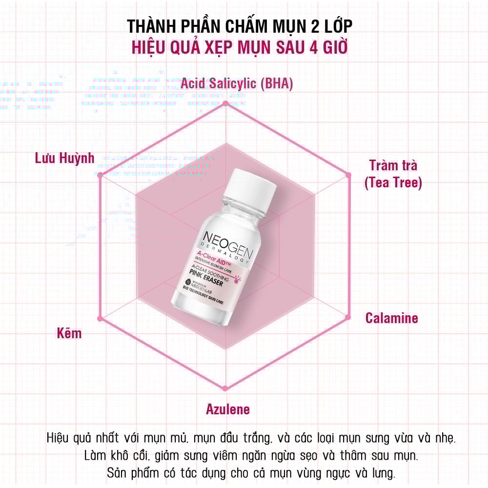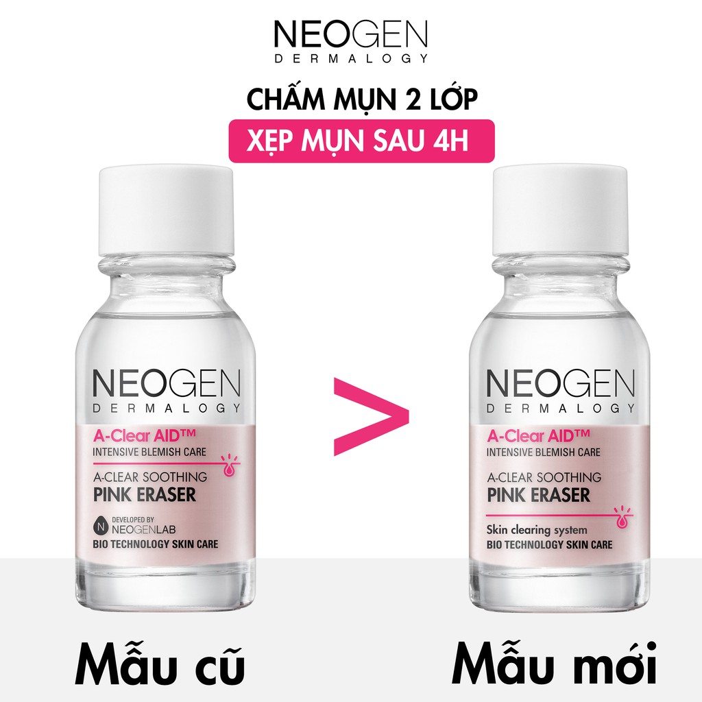 Neogen - Chấm Mụn A-clear Soothing Pink Eraser giúp chữa trị, làm dịu và xẹp những nốt mụn sưng đỏ một cách nhanh chóng, dịu nhẹ, không gây kích ứng cho da
