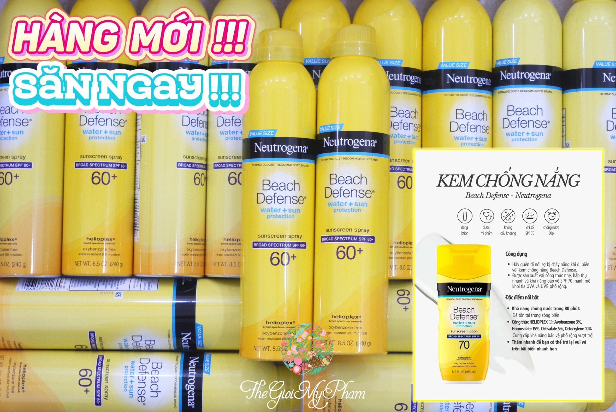 Xịt chống nắng Neutrogena Beach Defence SPF 60+ là một trong những sản phẩm nổi tiếng của hãng dược mỹ phẩm Neutrogena. Khi kem thẩm thấu vào da sẽ tạo nên lớp màng bảo vệ mạnh mẽ chống lại những tác hại của tia UV dưới thời tiết nắng gắt.