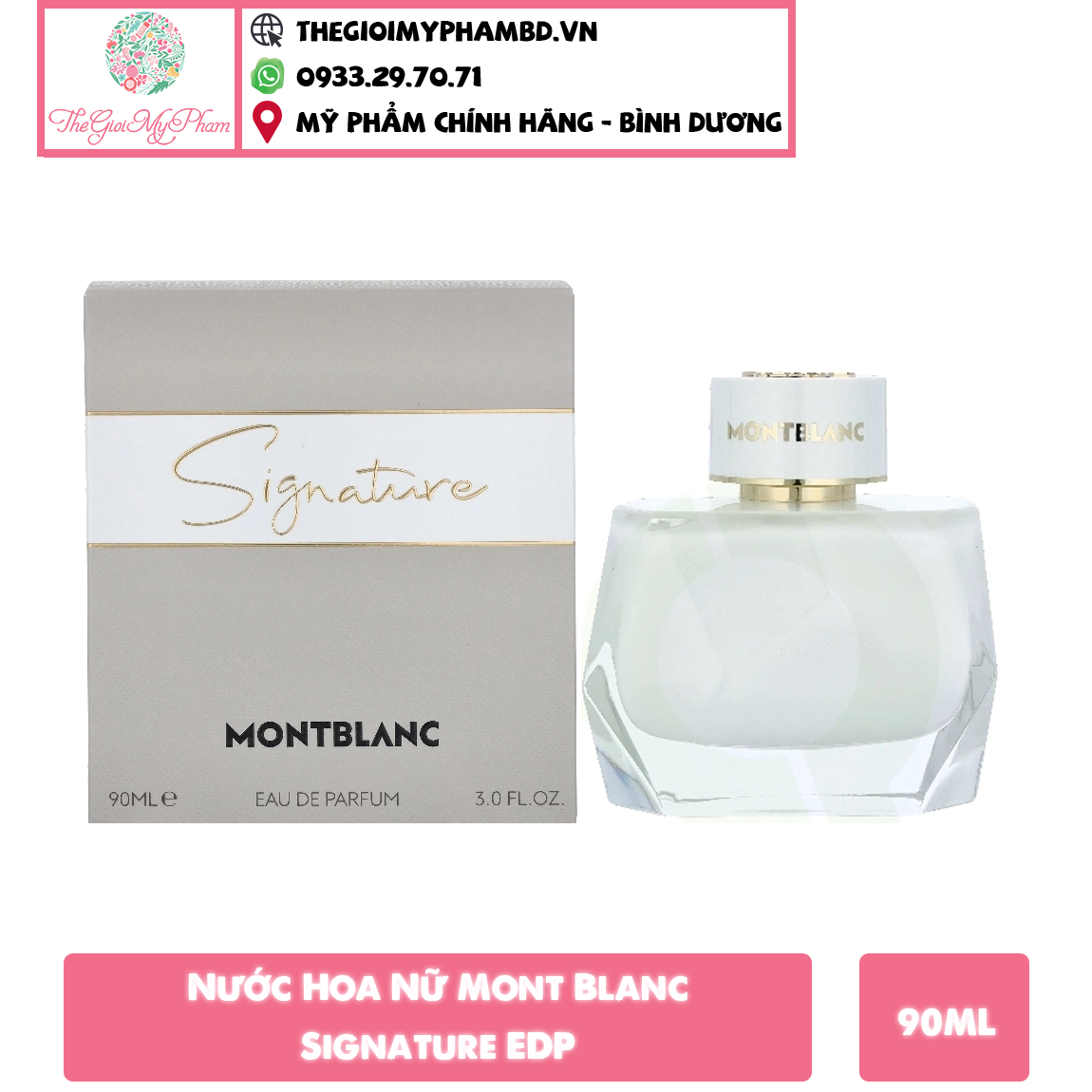- Nước hoa nữ MontBlanc Signature EDP là một sản phẩm nổi tiếng của thương hiệu nước hoa MontBlanc được yêu thích bởi sự sang trọng, quý phái và độc đáo của mình. Nước hoa Montblanc là một loại nước hoa dành cho nữ với hương thơm mạnh mẽ, quyến rũ và đầy cá tính. Sản phẩm được phát hành vào năm 2019 và được tạo ra bởi nhà chế tác nước hoa nổi tiếng Sonia Constant.