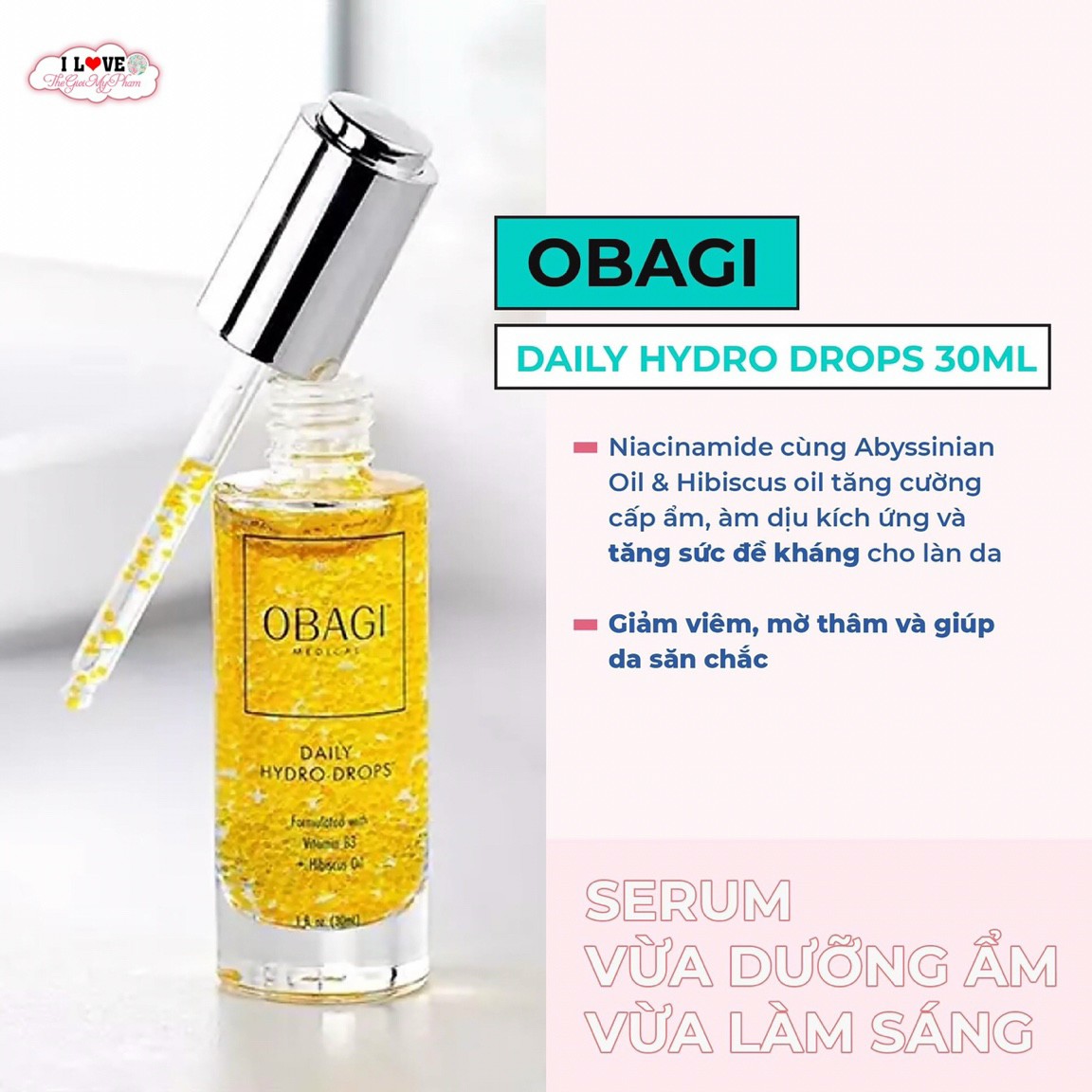 Serum Cấp Nước Phục Hồi Da Obagi Daily Hydro Drops là Serum cấp nước đầu tiên của thương hiệu lớn Obagi đến từ Mỹ, sử dụng vitamin B3 (niacinamide) cùng các chiết xuất dầu tự nhiên mang đến hiệu quả vượt trội.