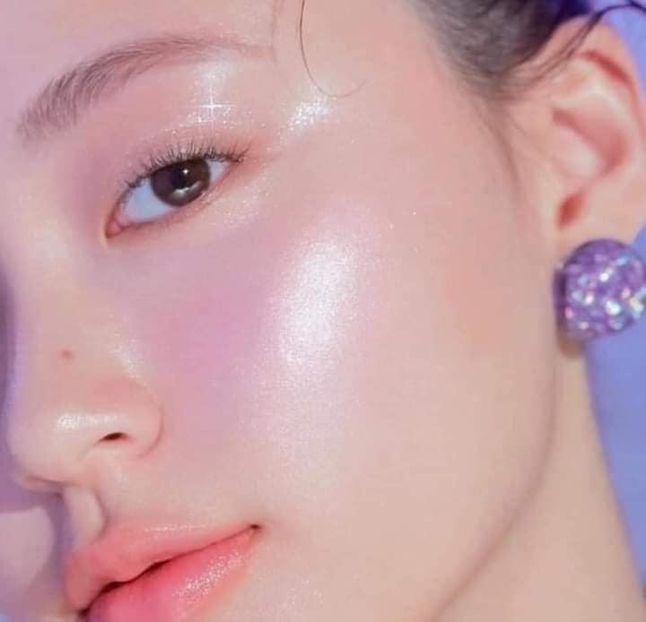 Dụng cọ hoặc tay lấy một lượng phấn bắt sáng vừa đủ, điểm nhẹ lên trán và gò má.