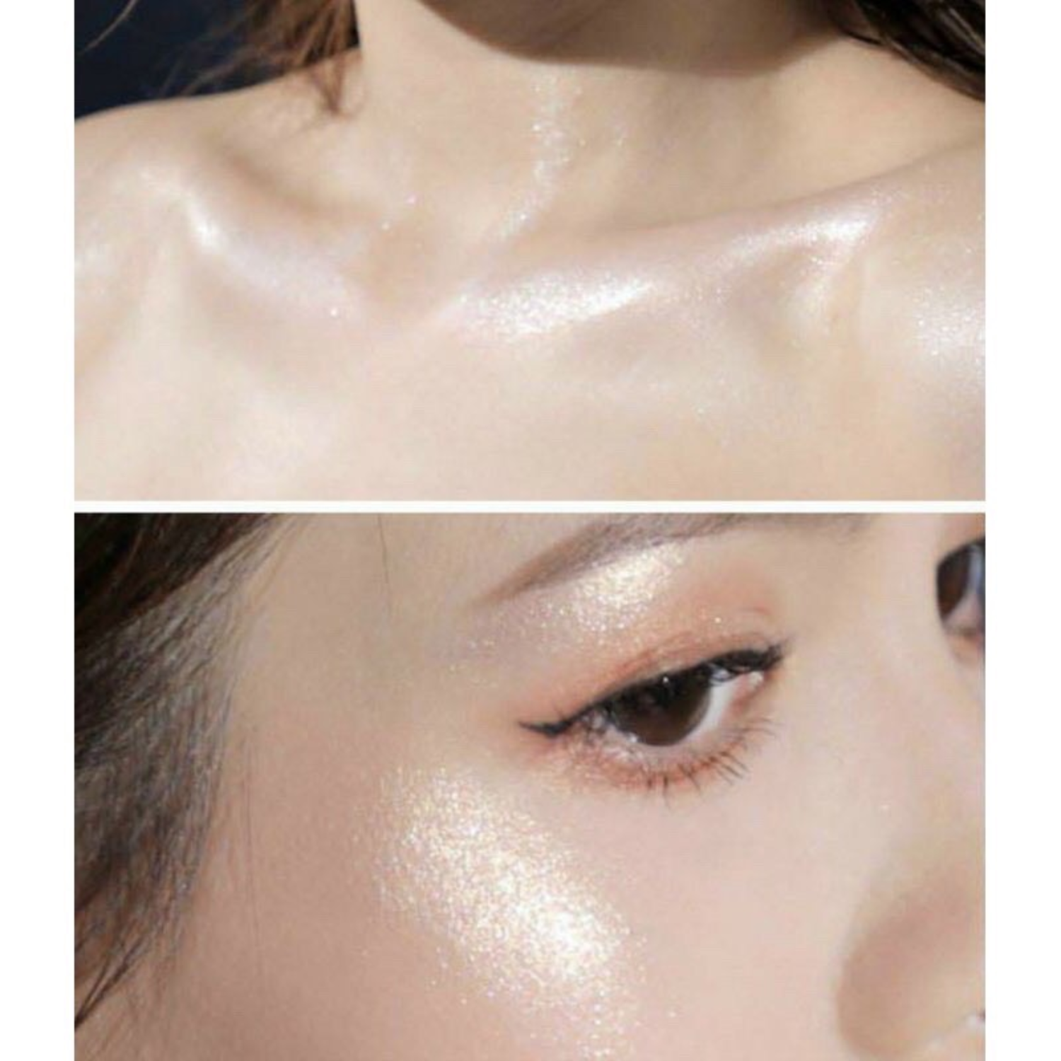 Phấn chứa các hạt nhũ trắng bạc siêu mịn, sáng lấp lánh tựa như những hạt bụi kim cương thật, mang đến hiệu ứng bắt sáng tự nhiên cho da.