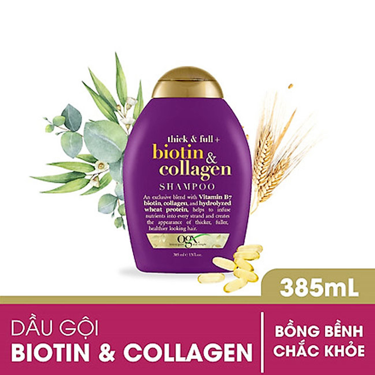 Dầu Gội Giàu Dưỡng Chất Chăm Sóc Tóc OGX Biotin Collagen Shampoo 385ml - Tím