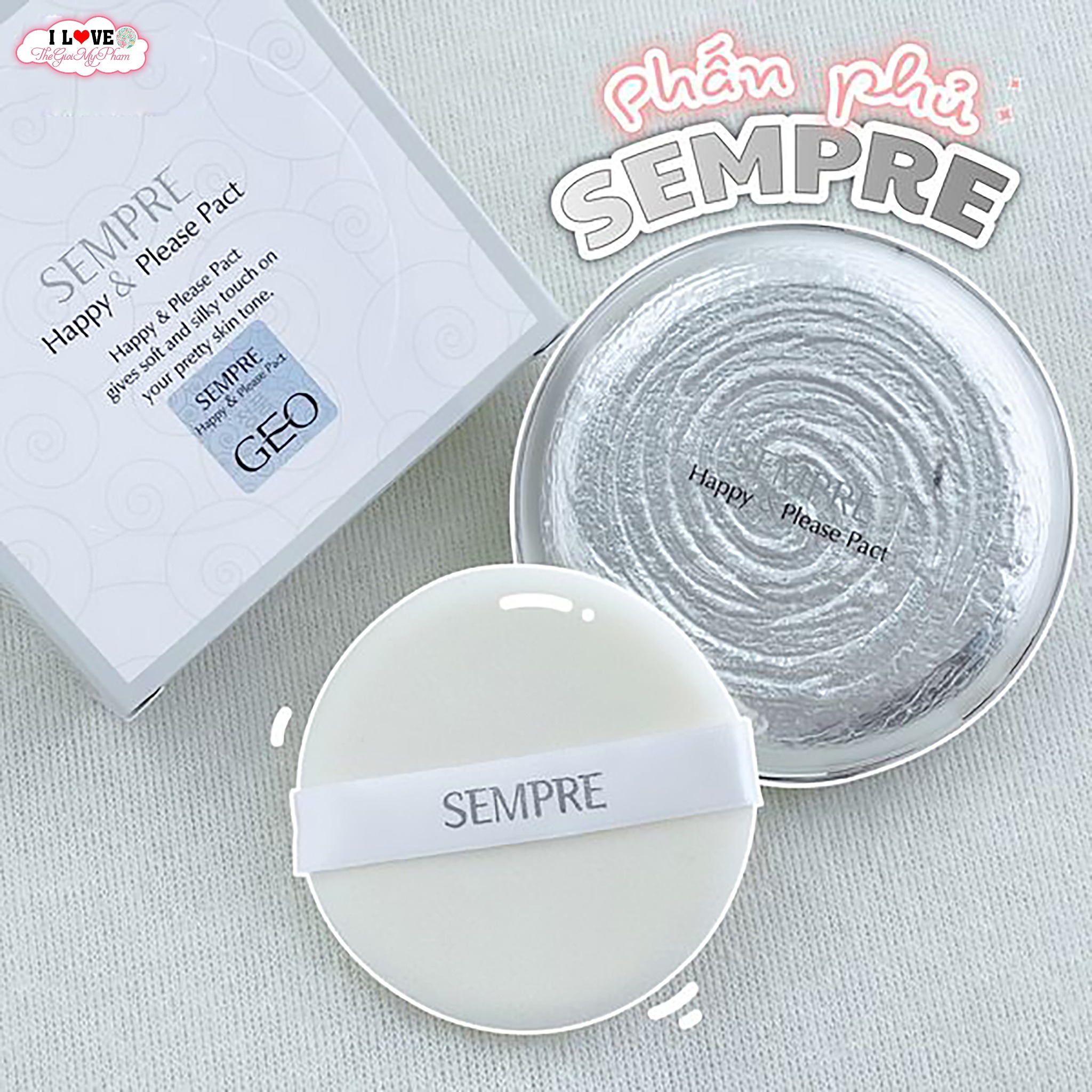 Phấn phủ Sempre Happy & Please Pact được tạo thành từ các hạt phấn bột rỗng dưới dạng nén siêu mịn tạo lớp phấn phủ hoàn hảo, mỏng mịn tự nhiên, độ bám tốt và khô thoáng trong suốt cả ngày đồng thời bảo vệ da với chỉ số chống nắng SPF 20.