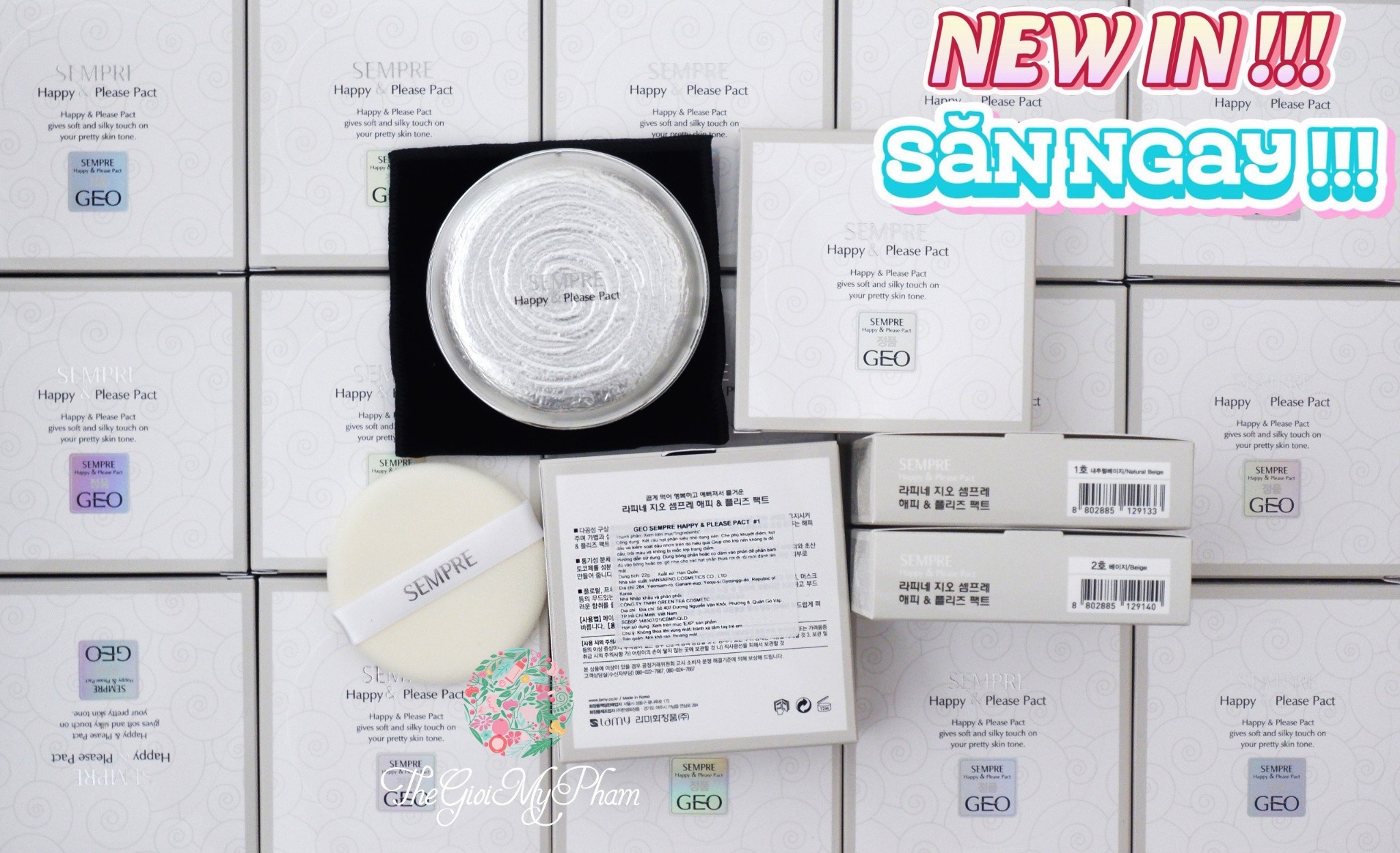 Phấn Geo trắng Happy & Please Pact : Phù hợp với da dầu, vì chức năng kiềm dầu cực tốt, có chỉ số chống nắng SPF 20