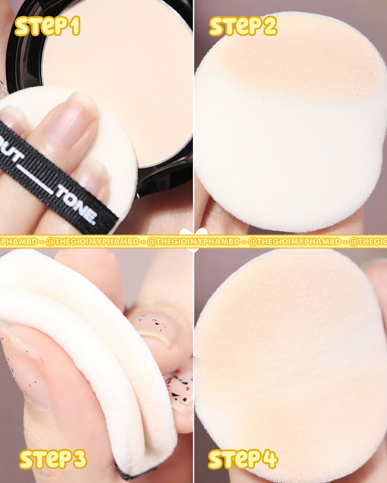 – Dặm nhẹ nhàng, đều tay để phấn có thể bám đều trên mặt và giữ lớp nền được lâu.
