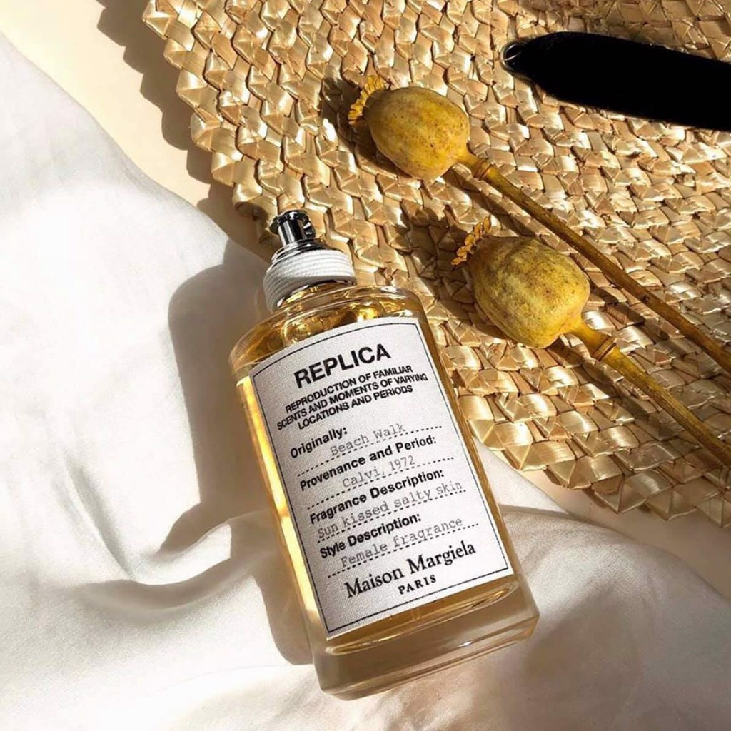 Beach Walk là một trong ba mùi hương đầu tiên trong bộ Replica của Maison Margiela, cùng với Flower Market và Funfair Evening, lột tả mùi hương của làn da ấm áp bên bờ biển đầy nắng tỏa.