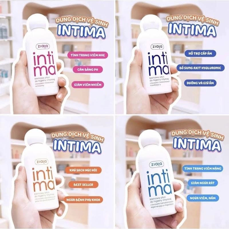 • Dung dịch vệ sinh Intima Intima Màu hồng: chứa thành phần Axit lactic là một chất kháng khuẩn tự nhiên, dành riêng cho các nàng bị viêm nhẹ.