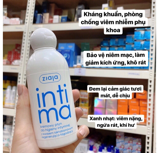 • Dung dịch vệ sinh phụ nữ Intima Xanh Nhạt: nhiễm khuẩn nặng, bị mụn vừa, tới nặng, khí hư nhiều - ngứa rát.
