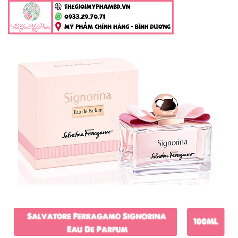 Mẫu chai Signorina quen thuộc nay được cách tân với chiếc nơ Vara hồng và tím tách biệt rõ rệt. Signorina Eau de Parfum mang đến một hương thơm cay nồng đầy sôi nổi, mùi hương nước hoa nữ tính tế này như đánh thức mọi giác quan của bạn thông qua những lớp hương được biến đổi vô cùng ấn tượng