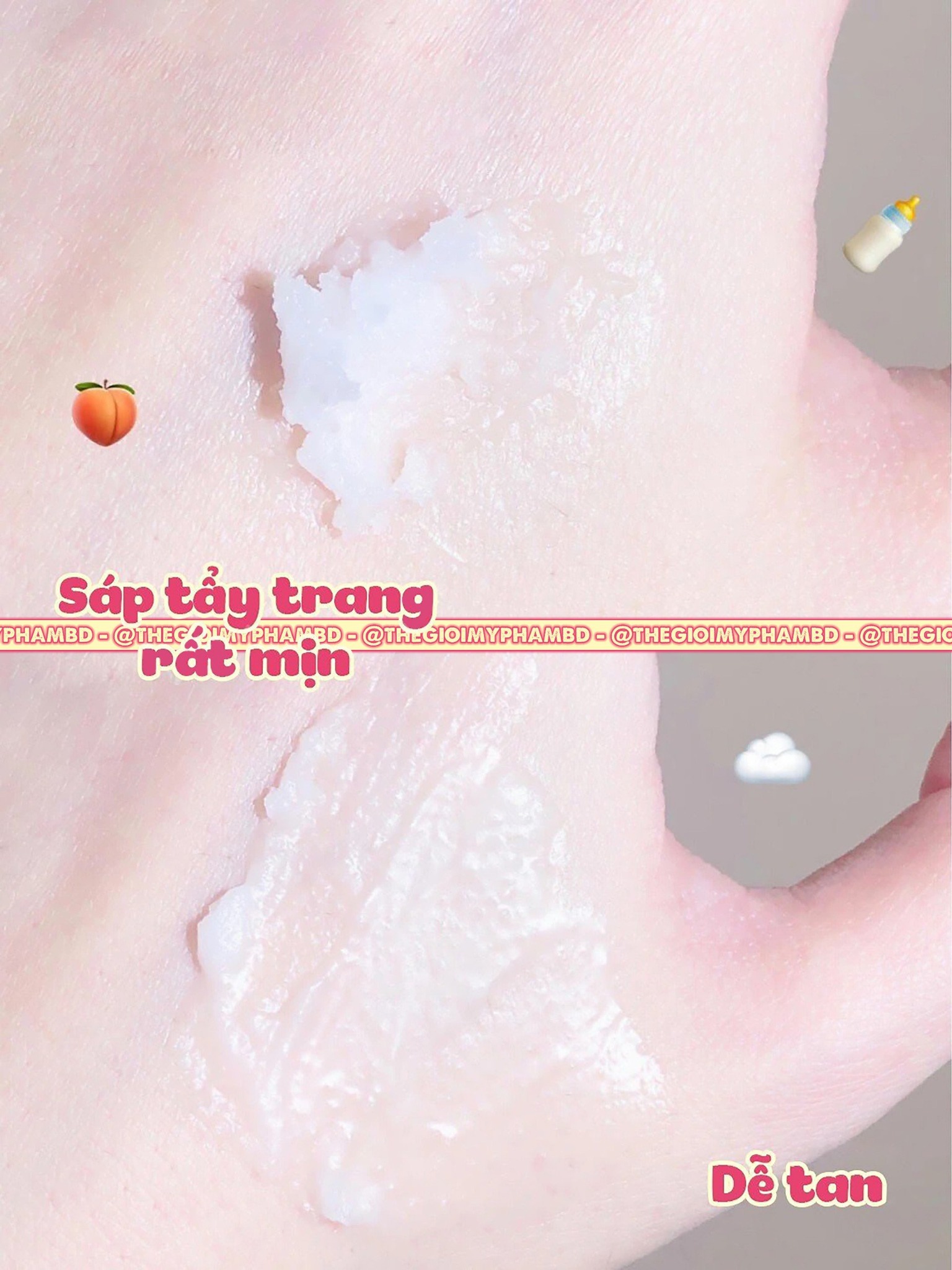 Chú ý: Rửa sạch tay và lau khô tay trước khi tẩy trang, không thoa lên khi ướt.
