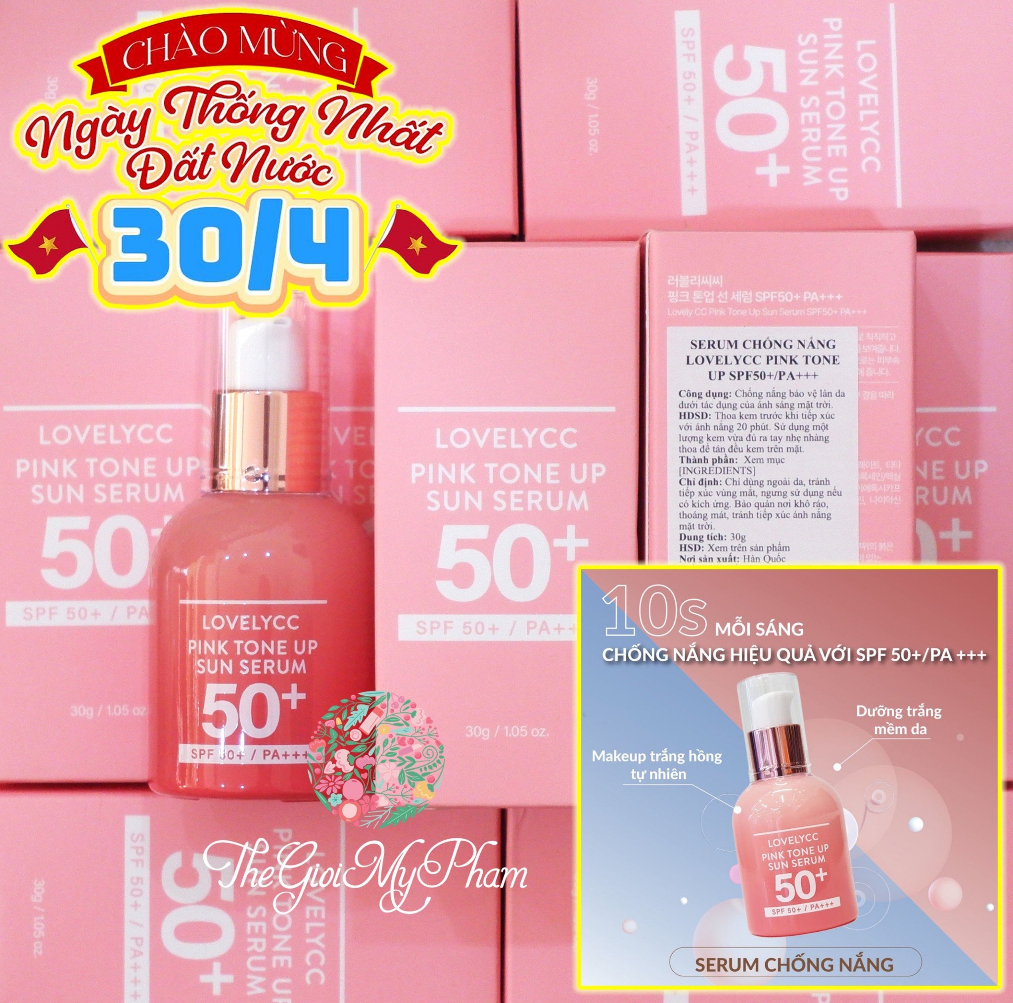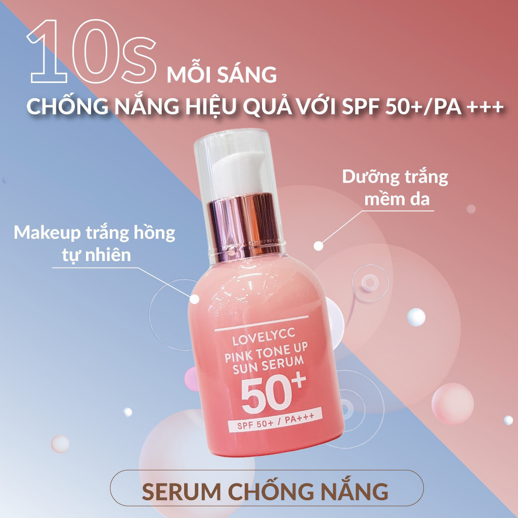 Serum Chống Nắng LovelyCC Pink Tone Up Sun SPF50+ PA+++ đến từ thương hiệu mỹ phẩm Hàn Quốc LovelyCC. Sản phẩm nổi bật với công thức vàng chứa nhiều thành phần dưỡng da.
