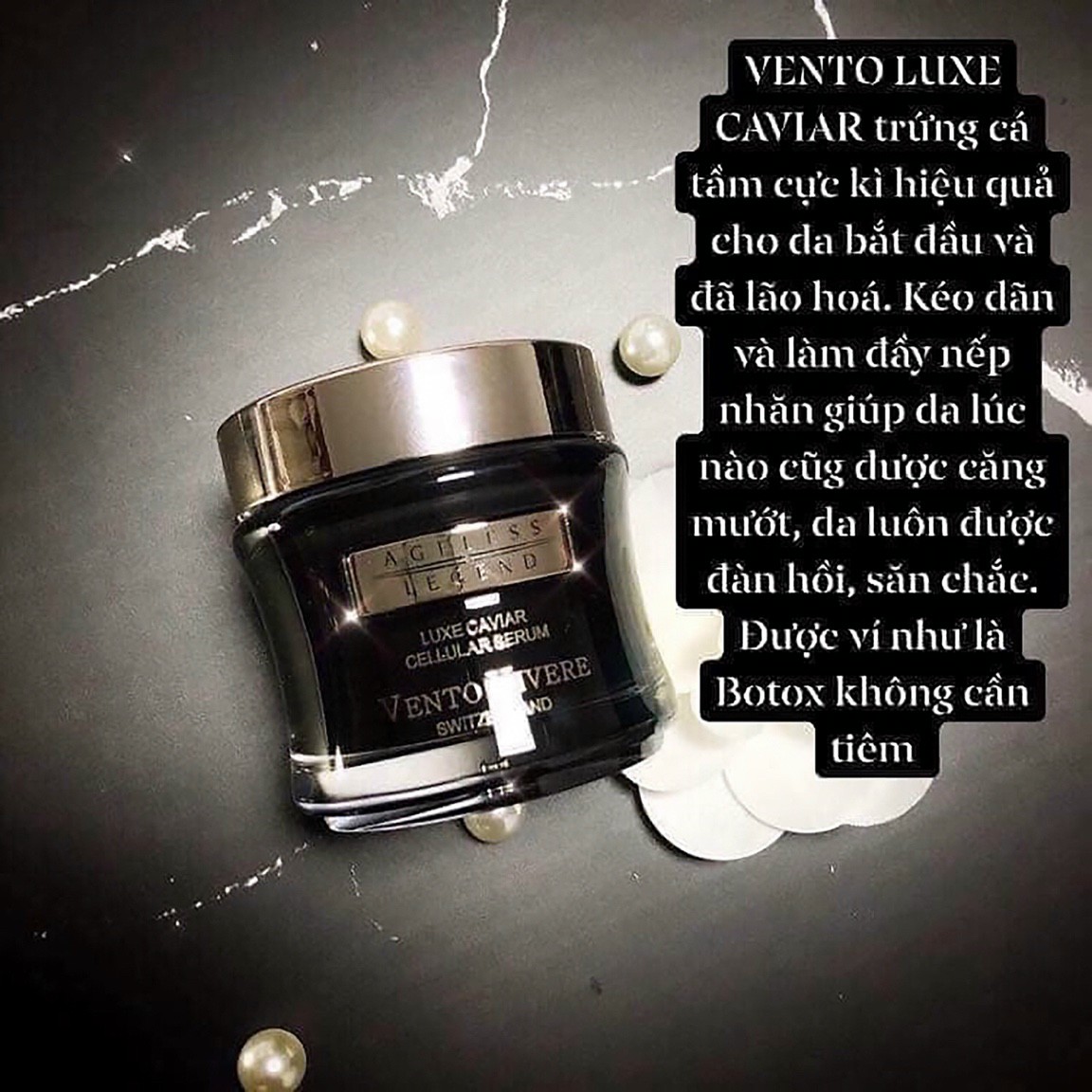 Serum Chống Lão Hoá Trứng Cá Tầm Vento Vivere Luxe Caviar Cellular Serum Thụy Sĩ có tác dụng xóa nhăn, giúp da đàn hồi, săn chắc rõ rệt. Đặc biệt Vento Vivere Luxe Caviar Cellular Serum khống chế quá trình lão hóa da. Đây được xem là công nghệ thay da từ tế bào noãn thực vật Thụy sĩ.