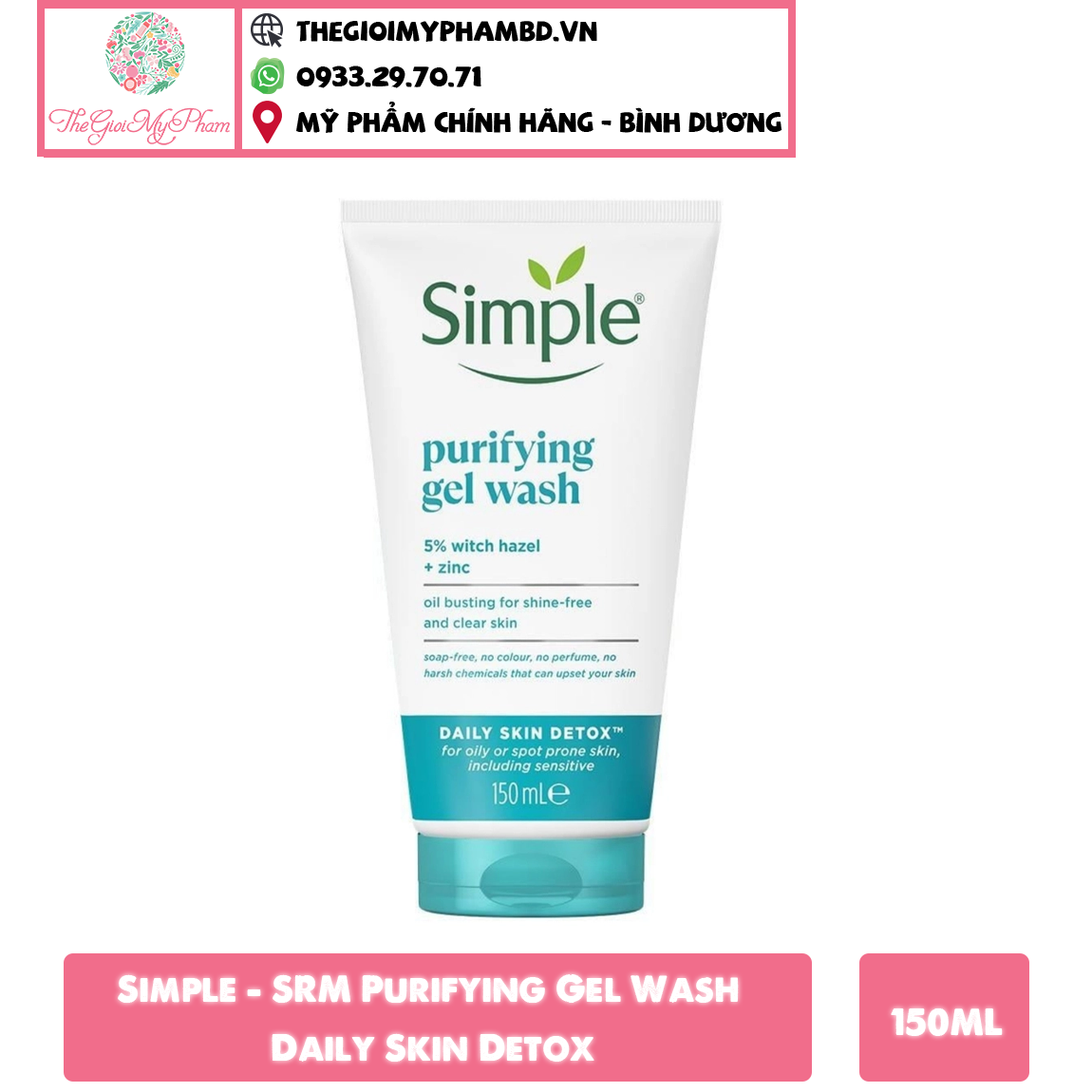 Sữa rửa mặt Simple Purifying Gel Wash Daily Detox chính là vũ khí bí mật giúp cải thiện tình trạng lỗ chân lông bị tắc và làn da bóng dầu. Với các hạt tẩy tế bào chết nhẹ dành riêng cho làn da dầu, da nhạy cảm, da bị mụn.