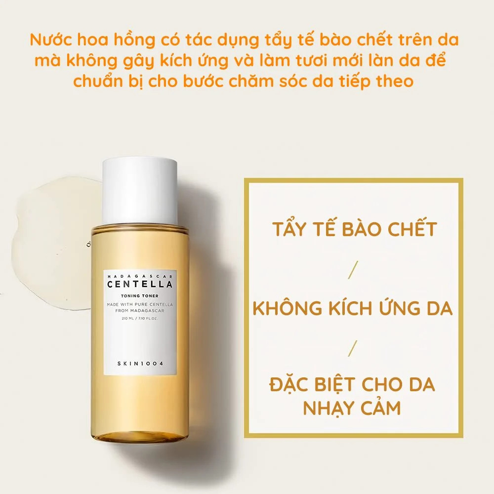 Nước Hoa Hồng Skin1004 Madagascar Centella Toning Toner là dòng kem dưỡng đến từ thương hiệu mỹ phẩm Skin1004 của Hàn Quốc giúp loại bỏ được chất nhờn, bụi bẩn còn sót lại tận sâu trong lỗ chân lông, vừa cung cấp độ ẩm cho da, cân bằng PH cho da hiệu quả, vừa có công dụng làm se khít lỗ chân lông. Chiết xuất từ thành phần tự nhiên, êm dịu cho da lại có tác dụng phục hồi da bị tổn thương nên da mụn, nhạy cảm vẫn có thể sử dụng được.