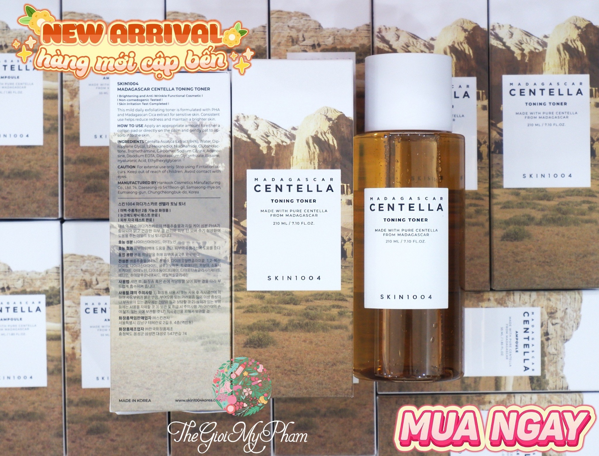- Centella Asiatica Extract: chứa 84% chiết xuất rau má giúp làm dịu da, giảm mụn, kháng viêm, kháng khuẩn, tái tạo tế bào trên da, kích thích sản sinh collagen, thúc đẩy quá trình làm lành vết thương, dưỡng ẩm cho da.