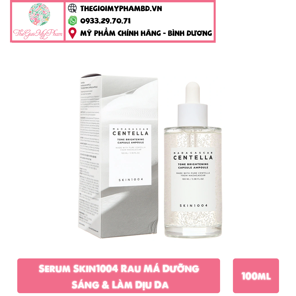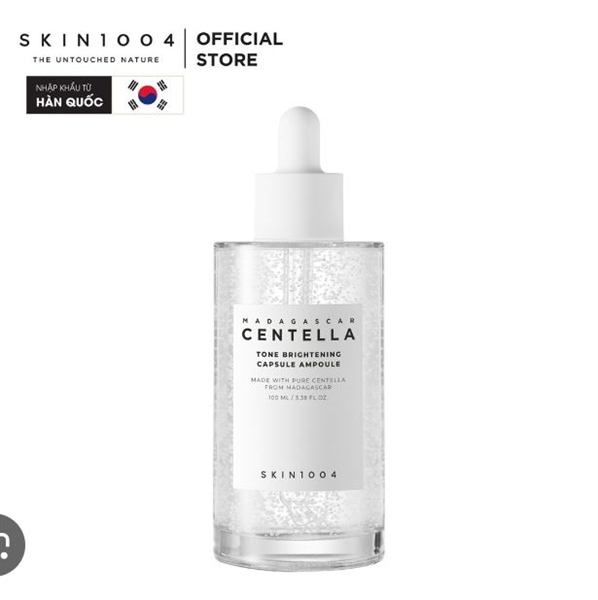 Tinh Chất Dưỡng Sáng & Làm Dịu Da Skin1004 Madagascar Centella Tone Brightening Capsule Ampoule là dòng kem dưỡng đến từ thương hiệu mỹ phẩm Skin1004 của Hàn Quốc,với công thức thành phần được cấp bằng sáng chế Madewhite™ chiết xuất từ rau má cùng với phức hợp dưỡng trắng gấp 3 lần bao gồm Niacinamide, Axit tranexamic và 3-o-Ethyl Ascorbic Acid giúp da trắng sáng đều màu, đồng thời hỗ trợ làm dịu và giảm kích ứng trên làn da nhạy cảm.
