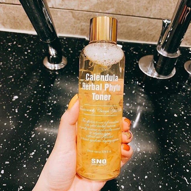 Toner hoa cúc SNO Calendula Herbal Phyto 200ml chứa 96% được chiết xuất từ thiên nhiên giúp nuôi dưỡng, làm sạch, cân bằng và ngăn ngừa các vấn đề da hiệu quả đem đến làn da sáng mịn, tươi trẻ. SNO là 1 brand orgarnic nổi tiếng của Hàn Quốc . Dù mới du nhập vô thị trường Châu Á nhưng độ hiệu quả và công dụng của em ấy đã được cái tín đồ Skincare truyền tai nhau.