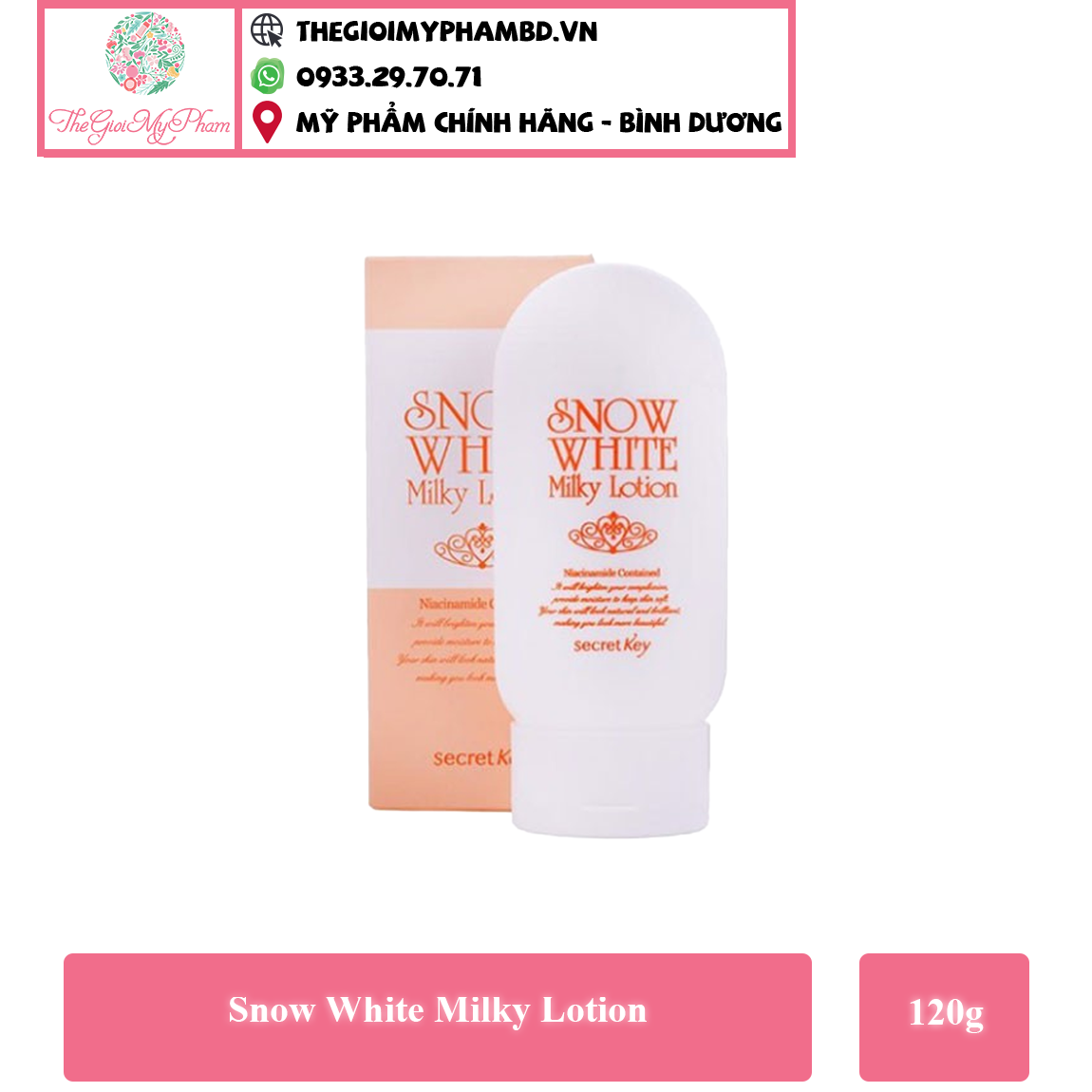 Snow White Milky Lotion giúp cung cấp nước và dưỡng ẩm tránh da bị khô, sần sùi, ngoài khả năng làm trắng sáng da bạn còn được dưỡng ẩm và mịn màng hơn, bạn sẽ cảm nhận được ngay ở lần dùng đầu tiên.