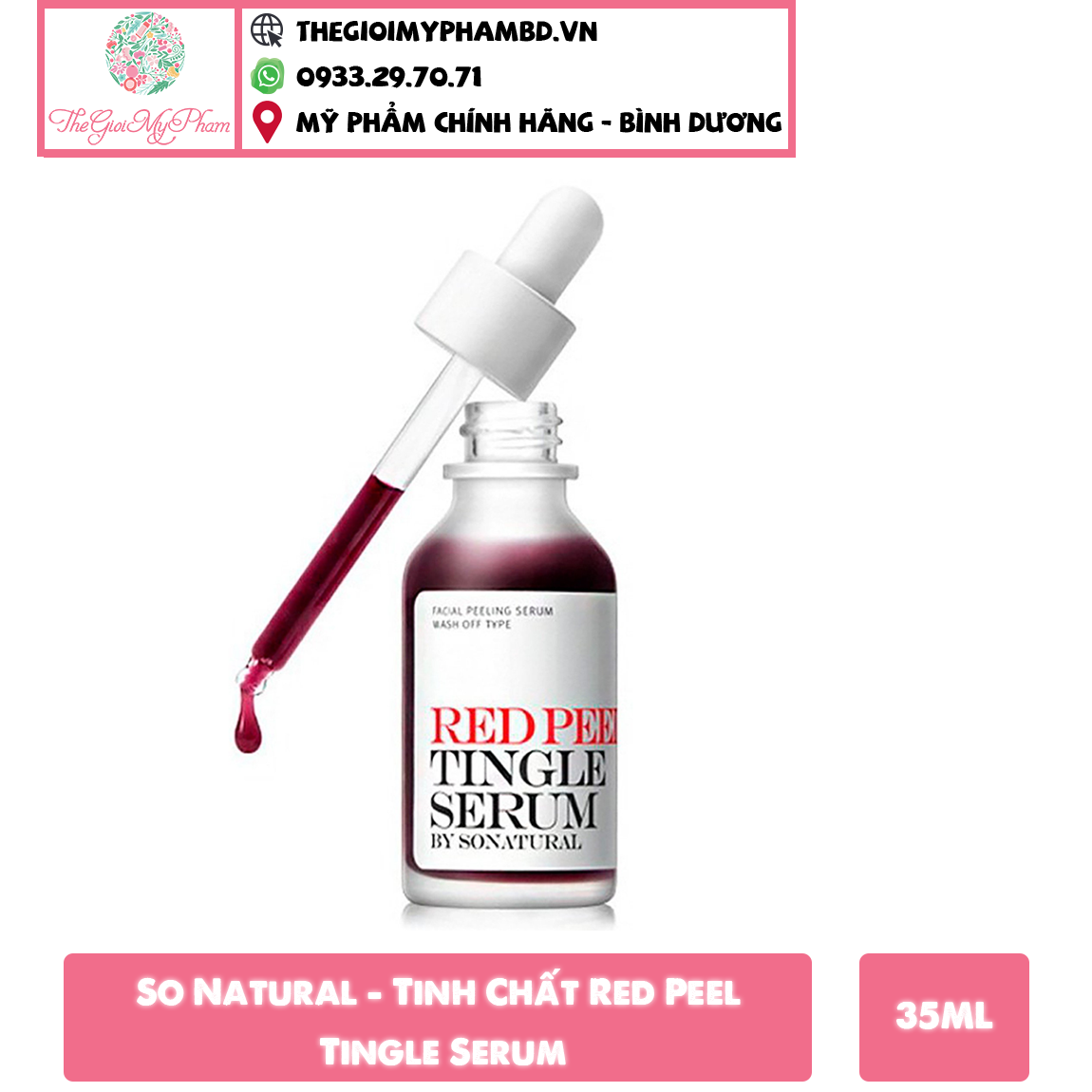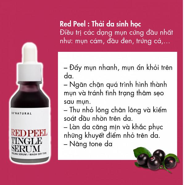 So Natural - Tinh Chất Red Peel Tingle Serum là tinh chất đến từ thương hiệu mỹ phẩm So’Natural của Hàn Quốc, là sản phẩm giúp peel da hay còn gọi là tẩy da chết hoá học giúp tác động vào lớp biểu bì, làm bong tróc các tế bào chết, loại bỏ các tế bào bị tổn thương, tái tạo làn da mới, đẩy mụn, hỗ trợ làm mờ thâm, đều màu và mang lại làn da rạng rỡ.