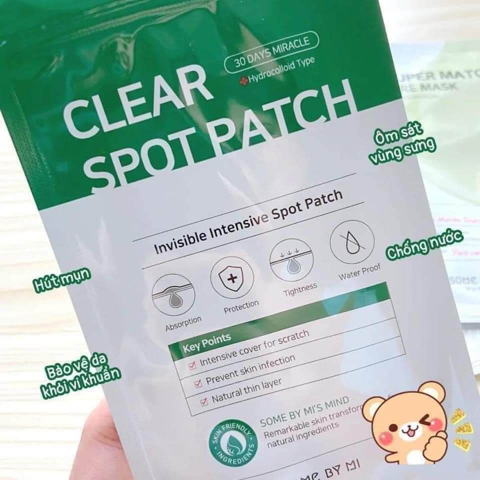 Miếng Dán Mụn Some By Mi Clear Spot Patch là thương hiệu đến từ Hàn Quốc,mỏng nhẹ, có độ bám tốt vào da tạo nên lớp màng hiệu quả giúp bảo vệ vùng da khỏi các tác nhân bên ngoài xâm nhập, với khả năng hút dầu và hút mủ trong mụn hiệu quả, giúp xẹp mụn trong thời gian ngắn, giảm hình thành các vết thâm mụn.