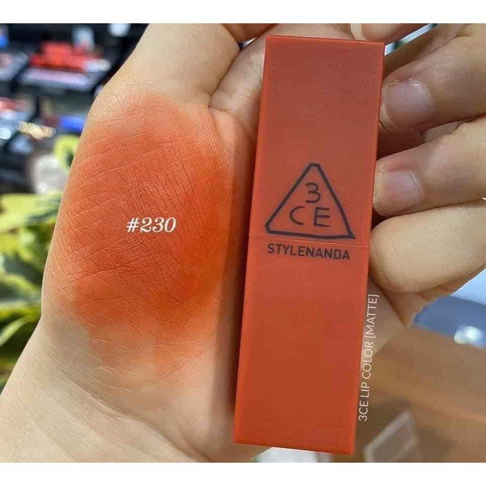 Ra mắt lần đầu tiên vào tháng 5/2017, BST 3CE Matte Lip Color không ngừng được hãng cập nhật các màu son dễ sử dụng, phù hợp với nhiều tông da, kể cả da trắng và bánh mật. Trong năm 2020, 3CE tiếp tục ra mắt 3 màu son mang phong cách MLBB (My Lips But Better) lì với tông cam là màu chủ đạo.