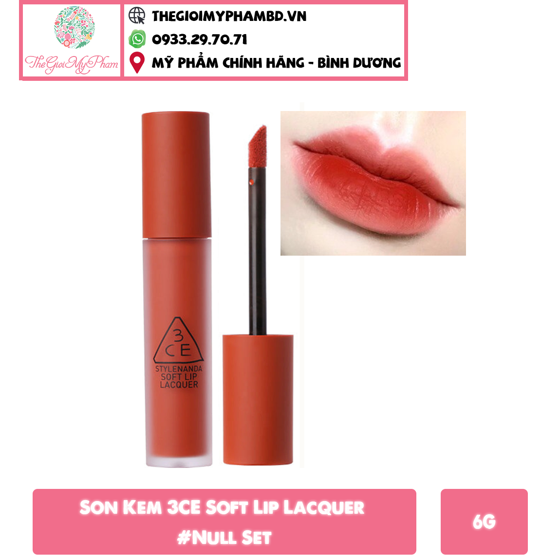 Son Kem 3CE Soft Lip Lacquer 6g