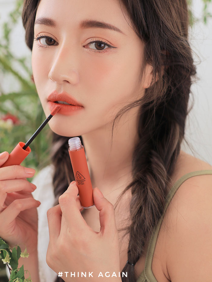 - Sản phẩm son kem lì chủ lực của 3CE Velvet Lip Tint với thiết kế đơn giản nhưng bắt mắt, vỏ son có màu mô phỏng màu son bên trong.