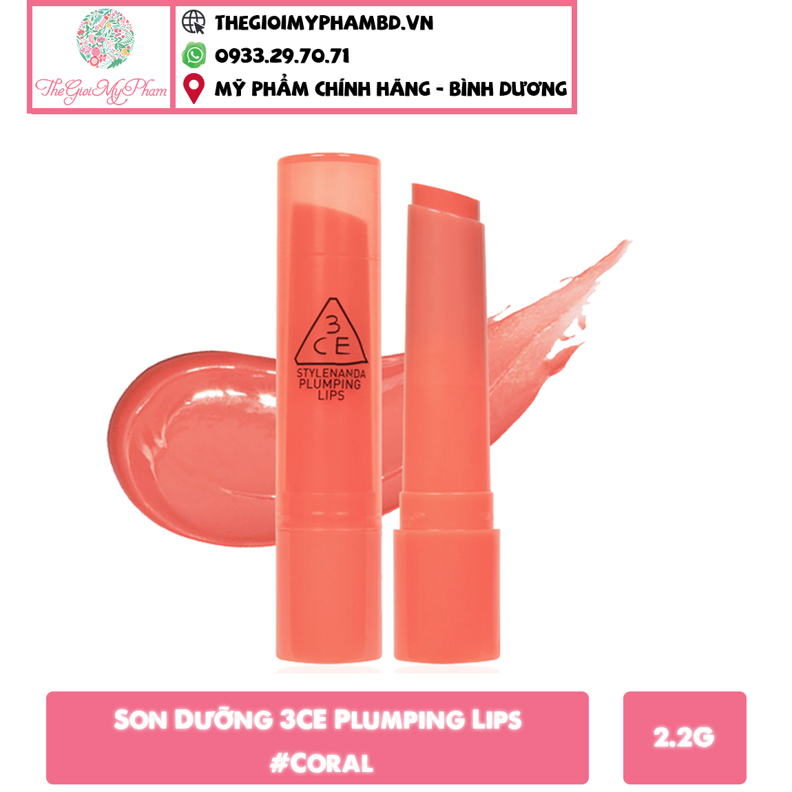 Công thức Glossy + chất son mềm + cực kỳ giàu dưỡng chất cấp ẩm nên 3CE Plumping Lips có khả năng tạo nên hiệu ứng “bơm môi” cực kỳ tài tình. 3CE Plumping Lips hoàn toàn có thể khiến cho đôi môi của bạn trở nên bóng và căng mọng, đầy đặn.