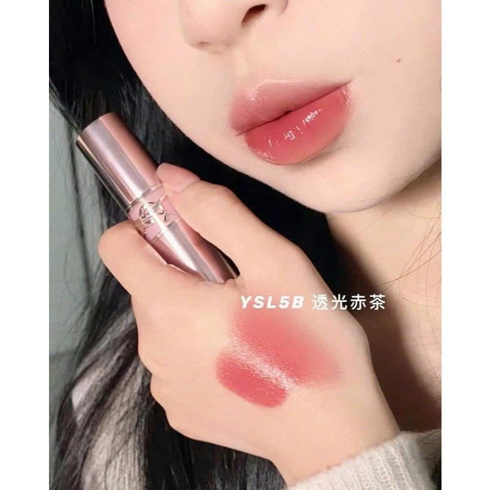 Có hiệu ứng bóng nhẹ căng mịn môi, thuộc dòng son dưỡng có màu của YSL