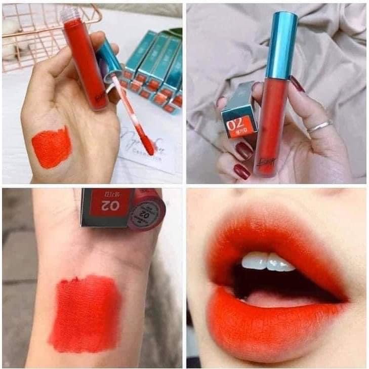 - Chất son tint kết hợp son kem lì bền màu, bám chặt lên môi, lên màu chuẩn sắc.