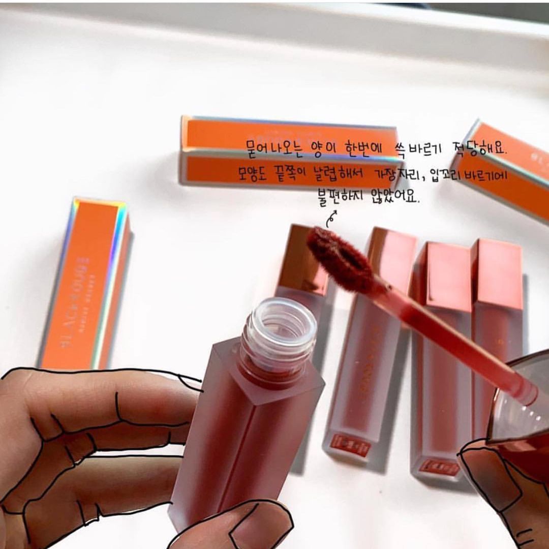 - Vỏ son là hình khối vuông vắn, cầm chắc tay, nắp son lại có màu cam đồng sang trọng, thân được làm bằng chất liệu nhựa nhám có thể nhìn thấy màu son bên trong.
