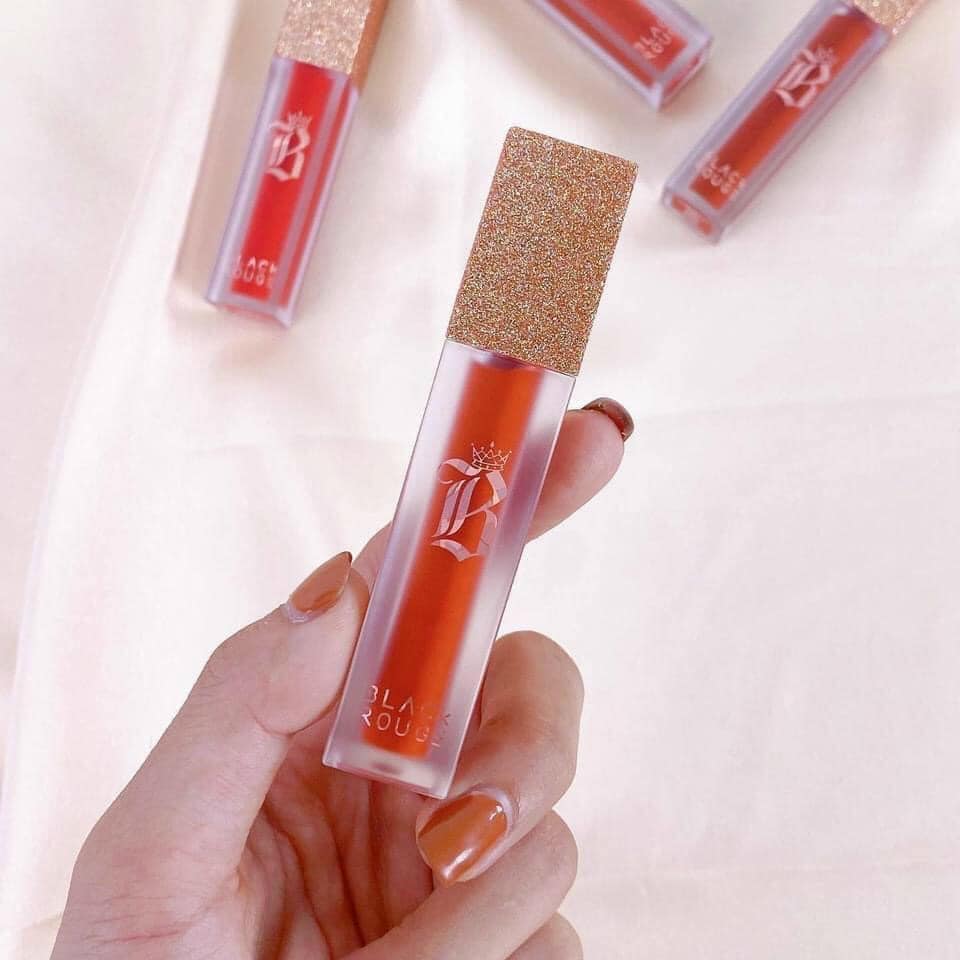 • Ngoài ra, Thân son vẫn là nhựa nhám lì trong dễ dàng thấy được màu bên trong, trên thân in hình logo Black Rouge lạ mắt, nắp son có điểm mới đó là được phủ một lớp kim tuyến màu vàng gold sang chảnh.