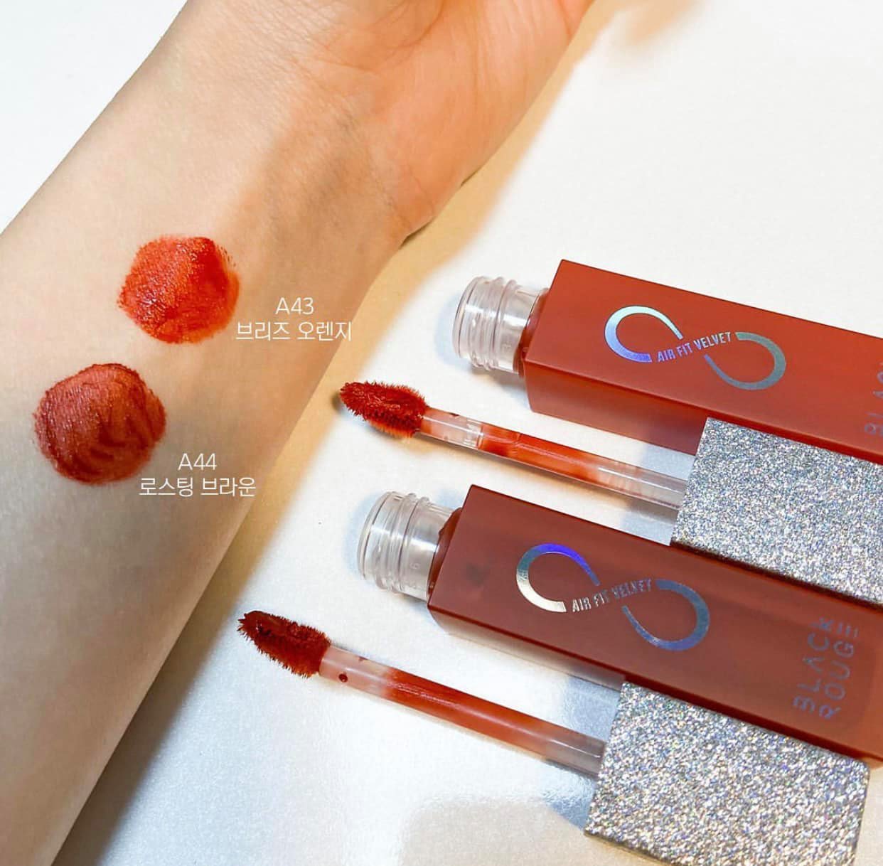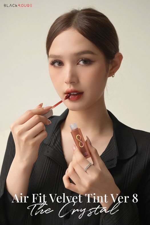 • Black Rouge Air Fit Velvet Tint Ver. 8 THE CRYSTAL với thiết kế sản phẩm đặc trưng của Air Fit Velvet Tint với thân son vuông, nhám lì chắc tay, màu của thân son được phủ một lớp coating color trùng với màu son bên trong.