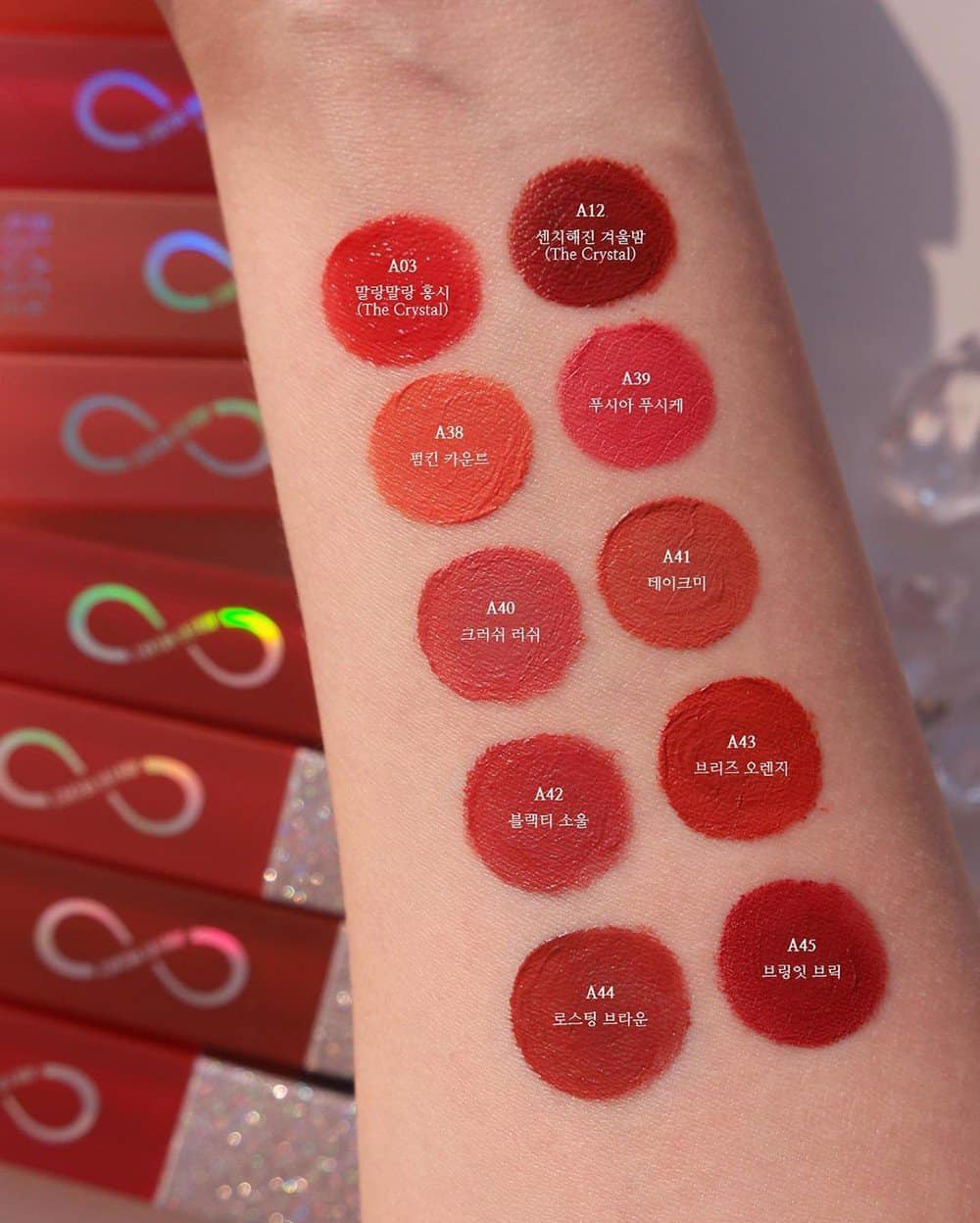 • Bao bì son với thiết kế hologram tươi sáng, rực rỡ với kí hiệu vô cực độc đáo, mang ý nghĩa: Một khi bạn đã trải nghiệm Air Fit Velvet Tint Ver. 8 THE CRYSTAL thì sẽ mê mẩn không lối thoát.