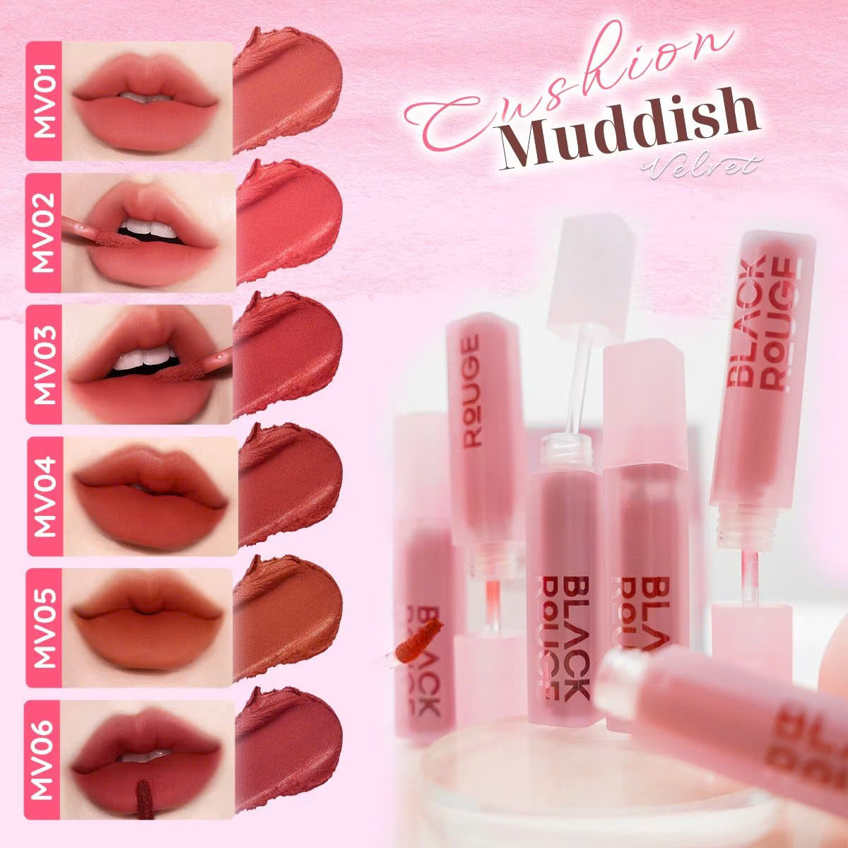 Son kem Black Rouge Muddish Cushion Velvet mang trong mình sứ mệnh chinh phục trái tim mọi cô gái yêu thích cái đẹp. Với chất son cushion độc đáo, đây là một bước tiến đột phá. Được thiết kế để đáp ứng mọi phong cách từ cá tính đến dịu dàng, sản phẩm thực sự là một lựa chọn tối ưu cho những ai tìm kiếm thỏi son lì, đa dạng màu sắc và độ mềm mại cho đôi môi.