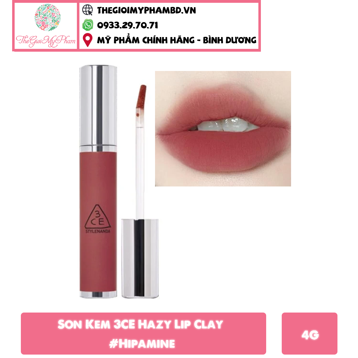 Được sản xuất bởi 3CE Stylenanda: Thương hiệu 3CE Stylenanda nổi tiếng với sự cam kết đem đến sản phẩm chất lượng và luôn cập nhật xu hướng làm đẹp. Hazy Lip Clay SS23 là một minh chứng rõ ràng cho sự sáng tạo và chất lượng cao của thương hiệu này.
