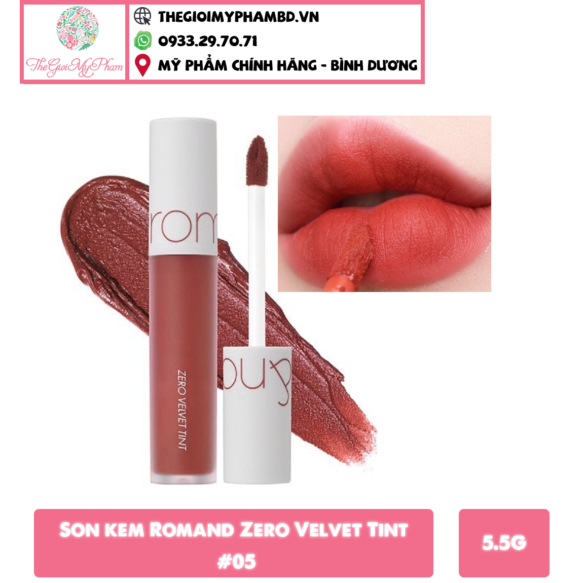 Chiếm trọn tình yêu từ các cô gái bằng các dòng son tint thời thượng và Son Kem Lì Mềm Mượt Romand Zero Velvet Tint là thỏi son đặc biệt được hãng hết sức chỉnh chu từ hình ảnh cho đến chất lượng kết cấu son.