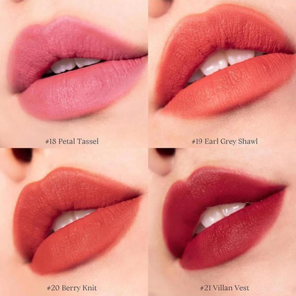 Son Romand Zero Velvet Tint với 4 tông màu son mới mang cảm hứng đôi môi mùa thu, sự trở lại của những màu đẹp nhất với chất son mềm mại như nhung, nhẹ tựa không khí cùng hiệu ứng bludging và bảng màu trendy vô cùng đa dạng, sự kết hợp hoàn hảo mang đến sự hài lòng cho bạn.