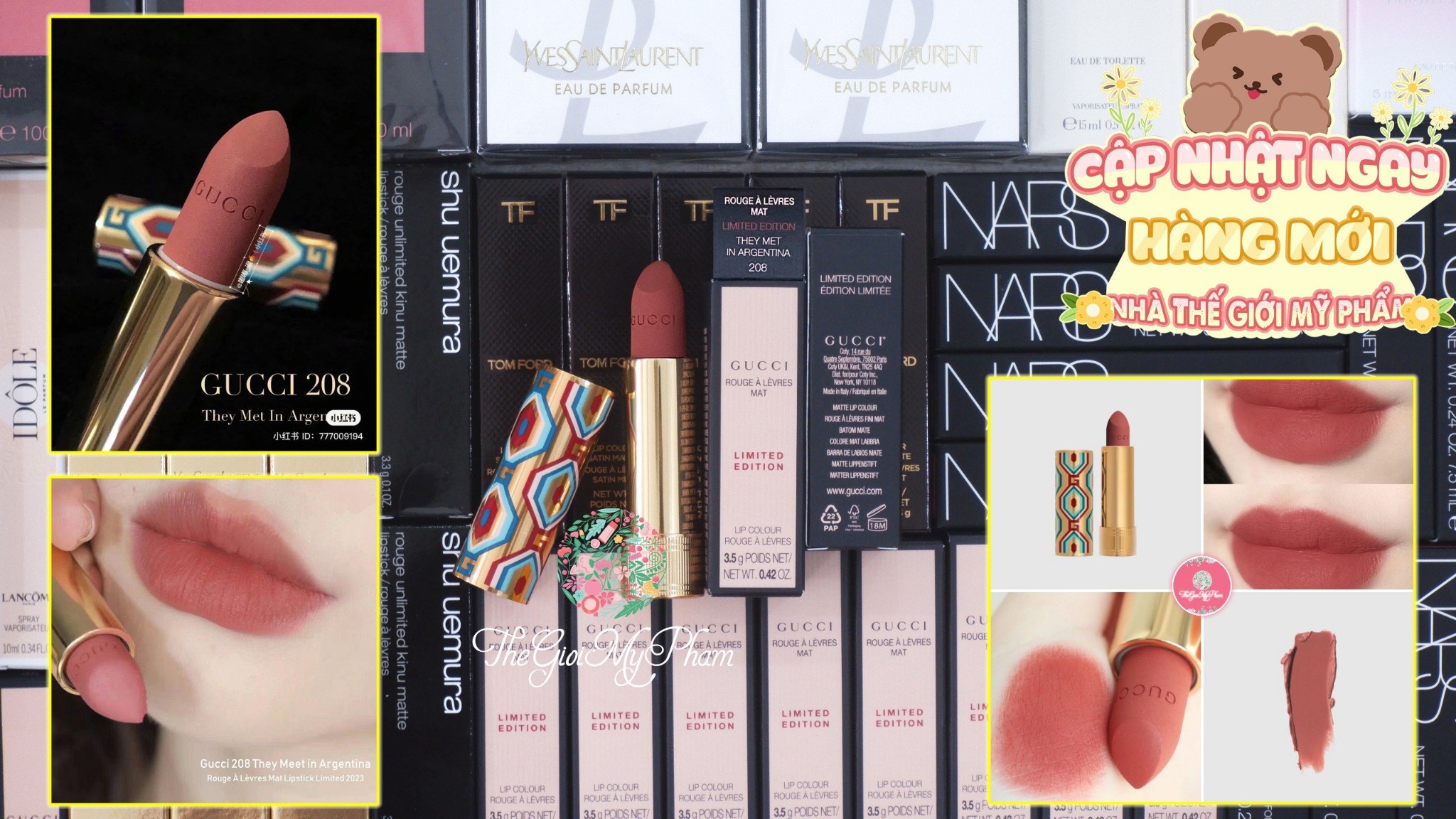 - #208 They Meet in Argentina: Sắc son hồng đất trầm lắng, ấm áp mà quyến rũ; kết hợp với chiếc áo mang màu sắc và hoạ tiết cực hợp không khí lễ hội; thỏi son sẽ là người bạn đồng hành tuyệt vời với nàng trong khoảng thời gian này.