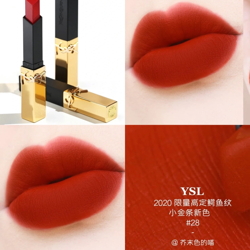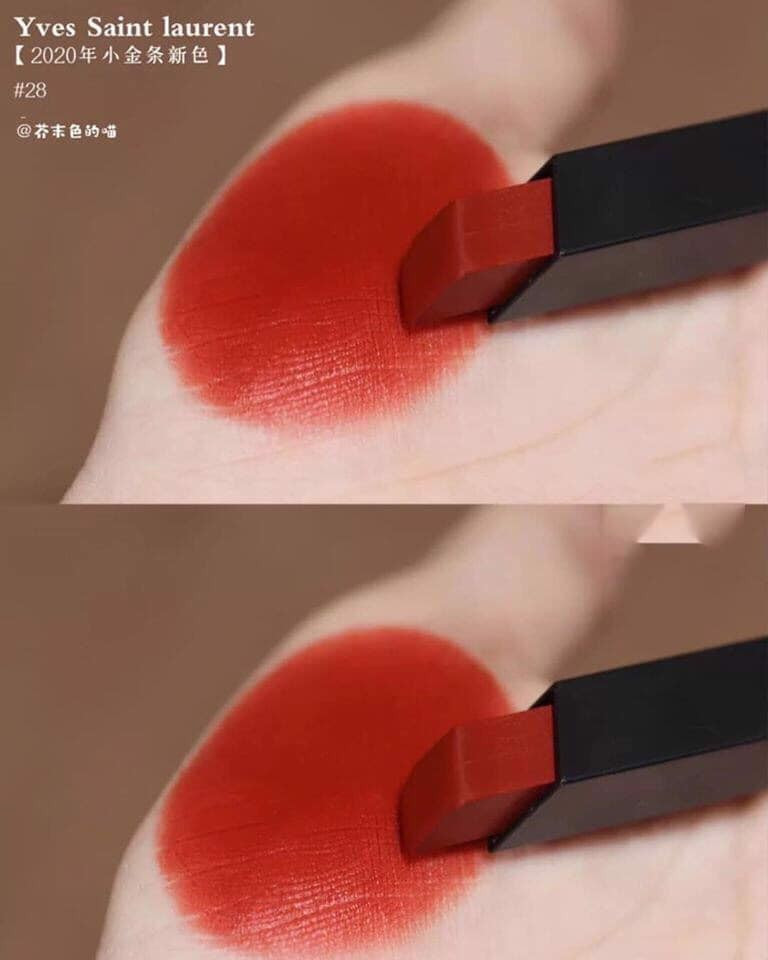 - Son YSL 28 Slim cho chuẩn xác, lên môi nhìn mọng cùng chất son mịn, mềm và mướt, rất nhiều dưỡng nhưng lại không bị cái cảm giác môi bóng và dính.