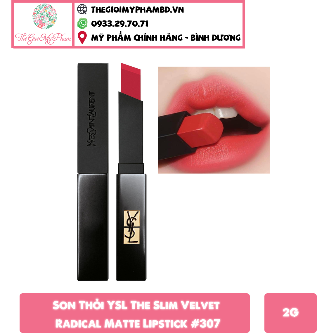 YSL SLim 307 - Đỏ pha chút base hồng cổ điển sang xịn mịn kiểu lên môi nhẹ nhàng, mà ngây thơ siêu đẹp.