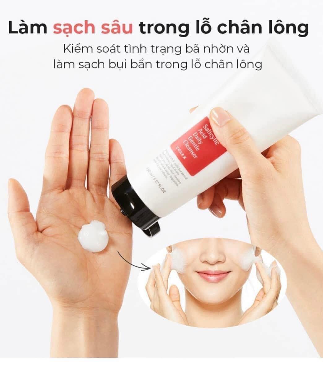 Cosrx Salicylic Acid Daily Gentle Cleanser có phiên bản trước là Cosrx Salicylic acid exfoliating cleanser, nhưng ở phiên bản này được cung cấp khả năng làm dịu da hơn phiên bản trước. Dòng này có khả năng loại bỏ tốt bụi bẩn, bã nhờn và vi khuẩn trên da. Nhờ đó giữ cho lỗ chân lông luôn thông thoáng và hạn chế phát sinh mụn hiệu quả.