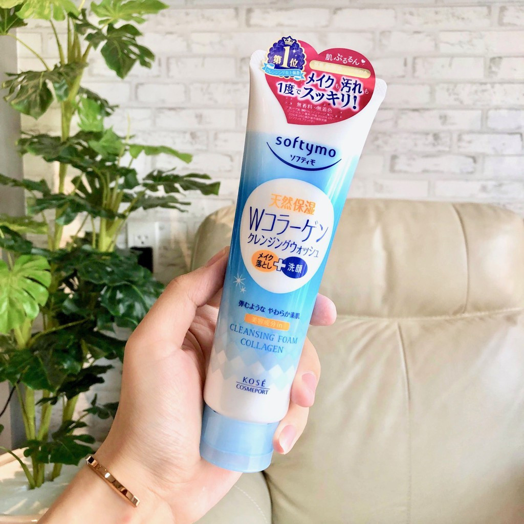 Sữa rửa mặt Kose Softymo Collagen (MÀU XANH): sữa rửa mặt Collagen giúp làm trẻ hóa, căng mịn làn da, chứa các thành phần tự nhiên và tinh chất dược thâm nhập sâu vào các khe hở lấy đi các chất bẩn và dầu trên da mặt, mang lại làn da khỏe khoắn và sạch đẹp.