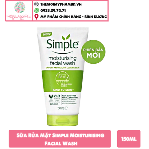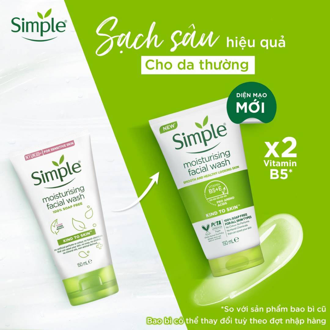 - Sữa Rửa Mặt Dưỡng Ẩm Simple không chứa phẩm màu hay t.h.u.ố.c nhuộm, không chứa hương liệu nhân tạo hay hóa chất gay gắt có thể gây kích ứng da.