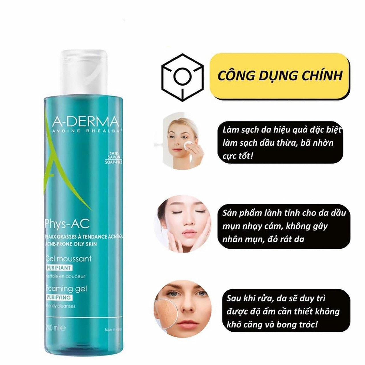 Sữa Rửa Mặt Cho Da Mụn, Nhạy Cảm A Derma Purifying Foaming Gel là sản phẩm chăm sóc da nổi tiếng đến từ Pháp có khả năng làm sạch dịu nhẹ, hạn chế những tổn thương cho vùng da mụn, cấp ẩm nhanh chóng mà không gây khô da, dưỡng da mềm mại, mịn màng.