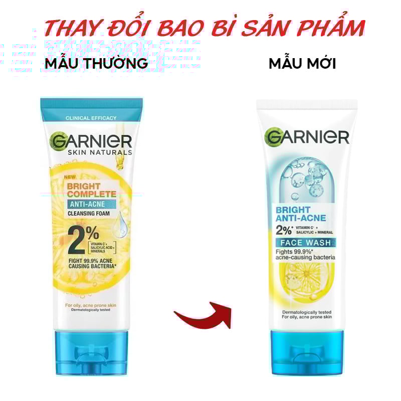 Sữa Rửa Mặt 3 Trong 1 Hỗ Trợ Giảm Mụn, Dưỡng Sáng Da Garnier Bright Complete 3-in-1 Anti-Acne Foam là sữa rửa mặt thuộc thương hiệu Garnier với công thức 3 trong 1 bổ sung Vitamin C & Salicylic Acid mang đến hiệu quả chăm sóc cho làn da sáng mịn và đều màu.