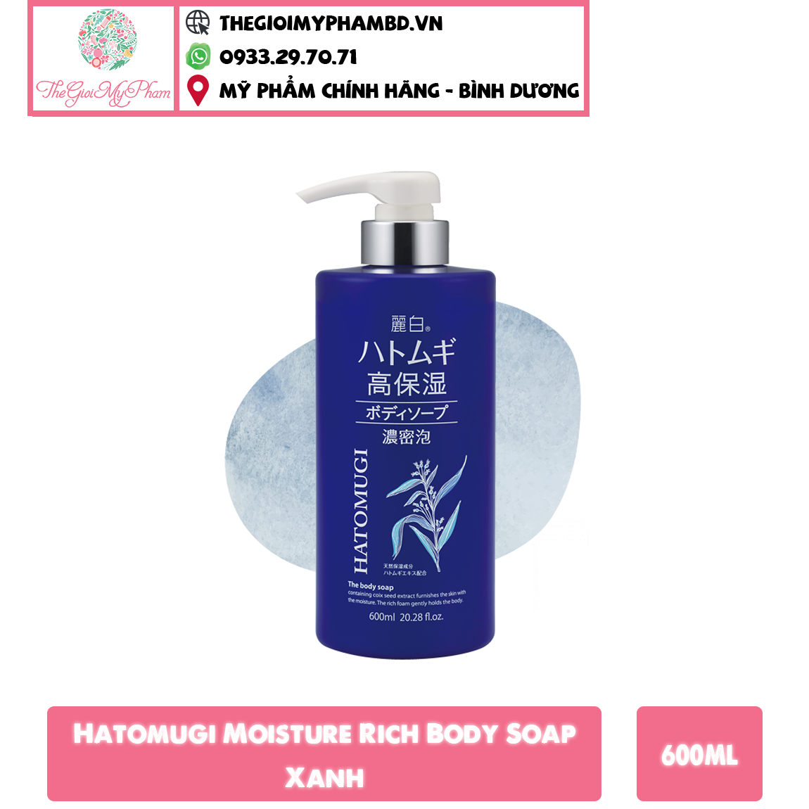 Sữa Tắm Dưỡng Ẩm, Làm Sáng Da Hatomugi Moisture Rich Body Soap 600ml - Xanh